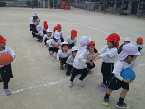 今日は外でたくさん遊びました!まずはマラソンをして体を温めました。