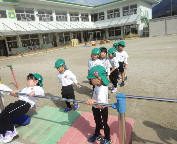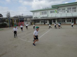 走る・ジャンプ・ケンケン・スキップなどしながら、園庭をグルグル回り、体が温まってきたようでした!