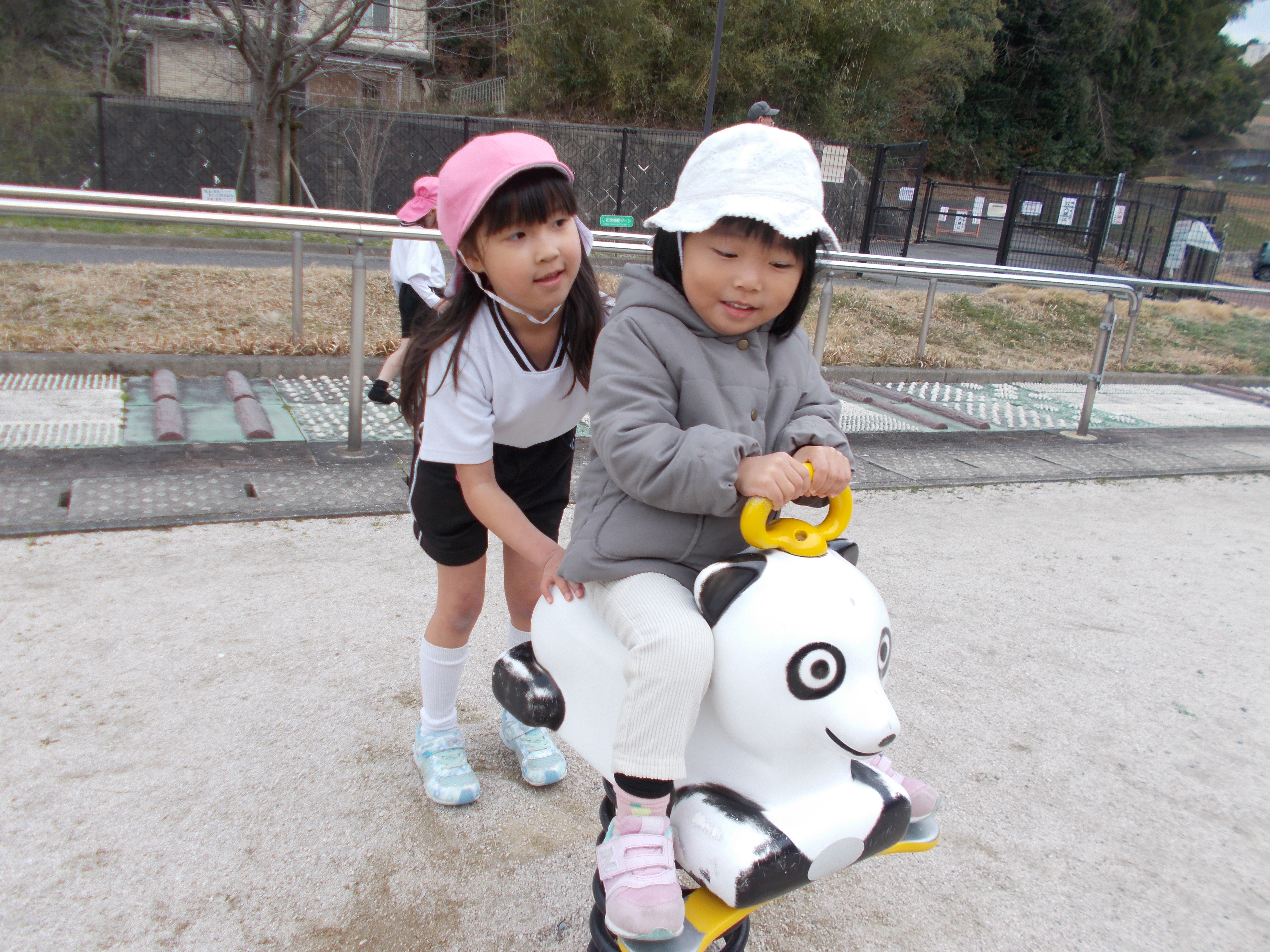 朝は、お天気だったら、お兄さん・お姉さん達と外遊びをします😊🎵