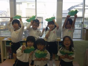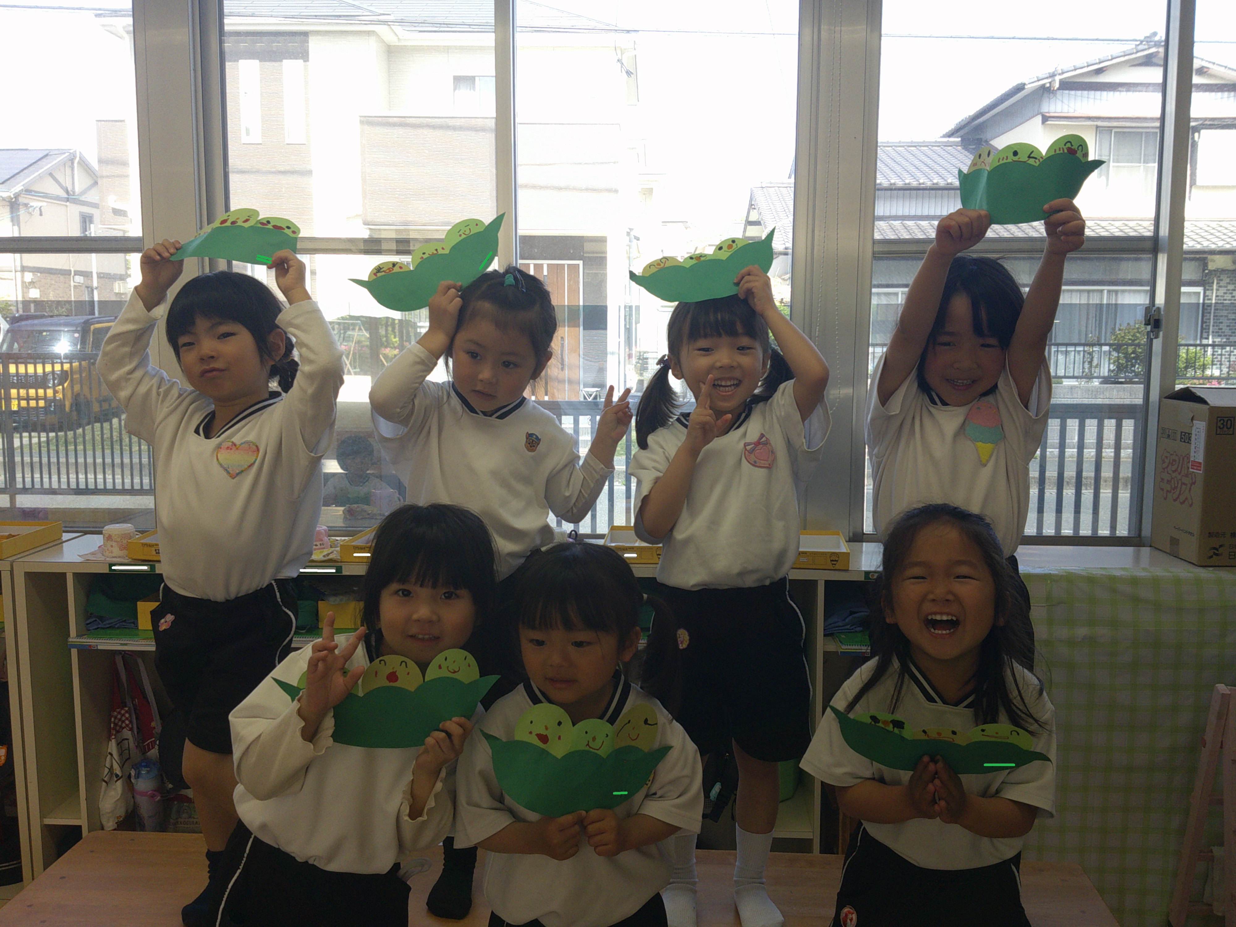 そして今日は顔の表情はどんな表情があるかみんなで考えて豆に顔を描きました!