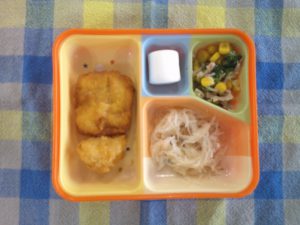 「美味しい~(^^♪」「これ何?」「これ嫌い・・・」など色々な声が聞かれ、賑やかな給食でした♬