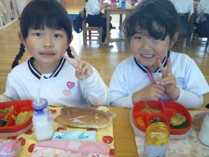 今日はパンの日でしたが、「もう年長さんだから全部食べられるよ!」と、頼もしく言っていたあやめぐみさん。