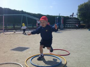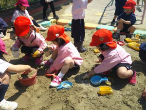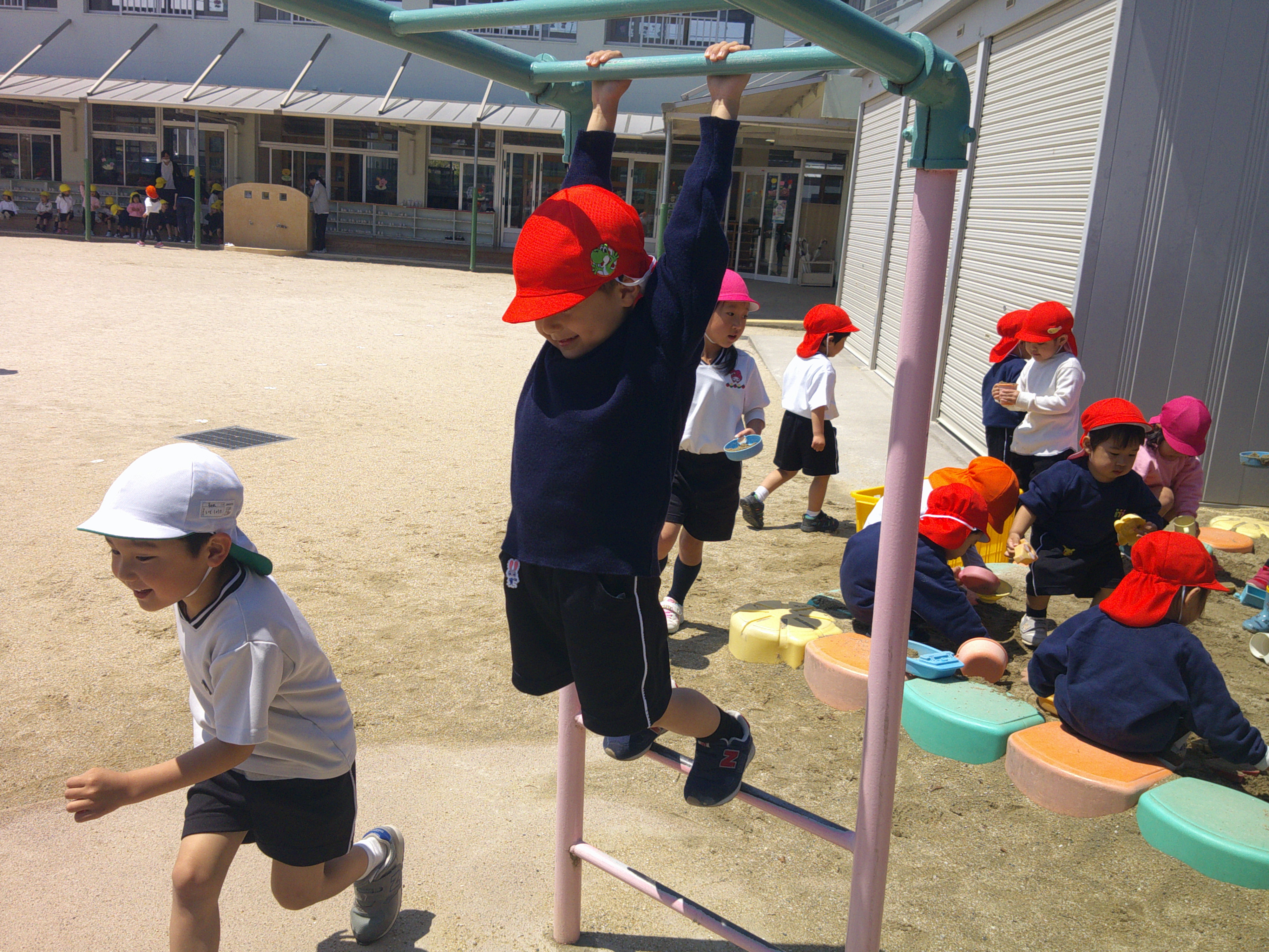 今日は朝からいい天気☀外での朝のお集まりに参加しました。