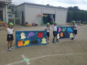 先日は、運動会でお家の方と一緒にする《ギョギョギョ!水族館》を年長さんと一緒にしました!