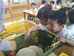 色々な楽器を使って演奏することを伝えると「やった~!」「楽しそう😆」と喜んでいた子どもたち。