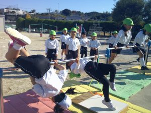 鉄棒で、逆上がりと空中逆上がりを頑張りました!
