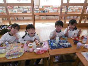 久しぶりのおうちの方の弁当に、「早く食べたい~😀」とわくわくしていた子どもたち😆