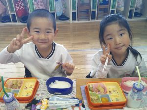木曜日、気温も高く、外で縄跳びの練習をしました。