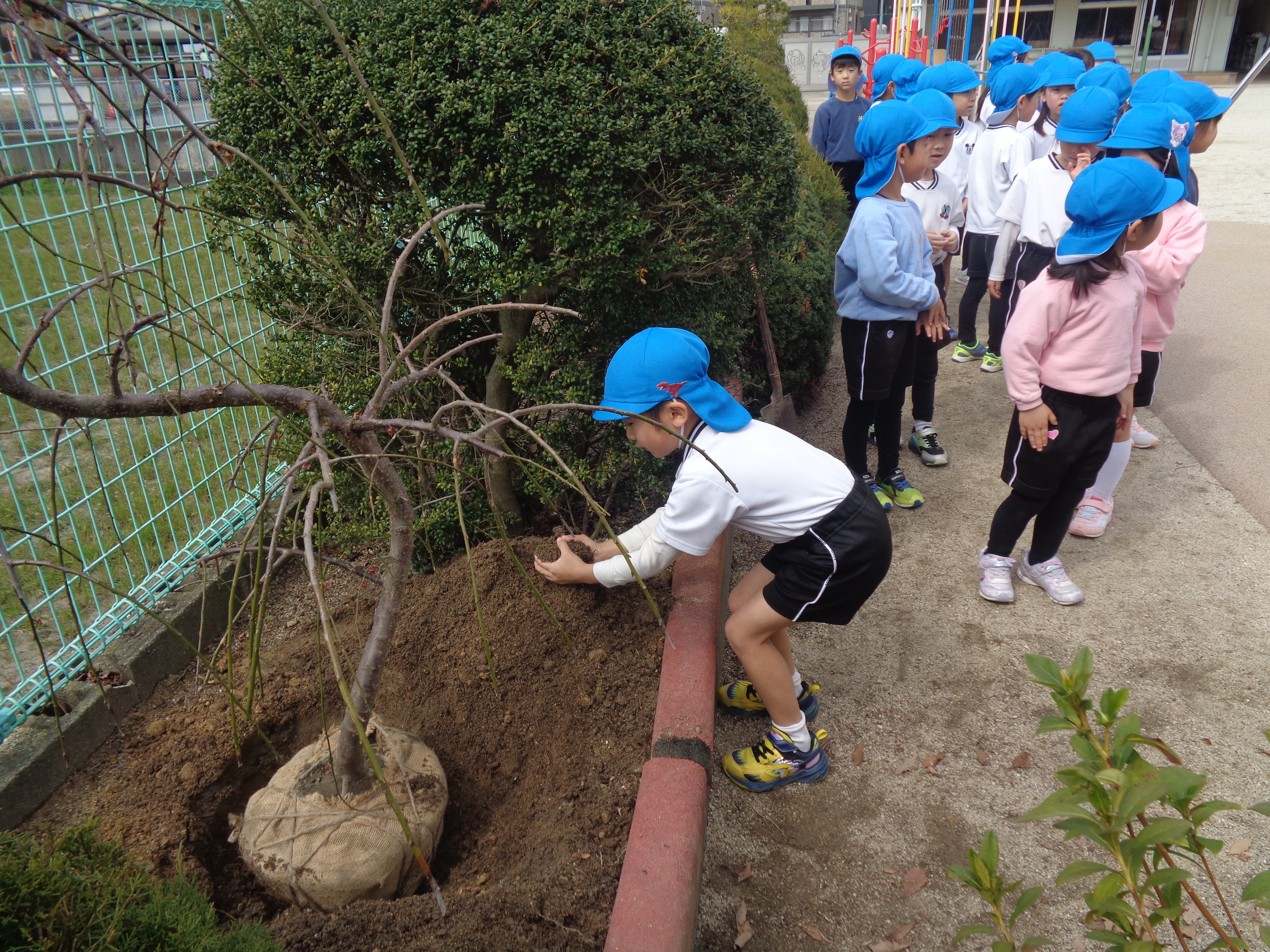 交流会の後は、卒園記念植樹を行い、今年は「シダレ梅」を植えました。