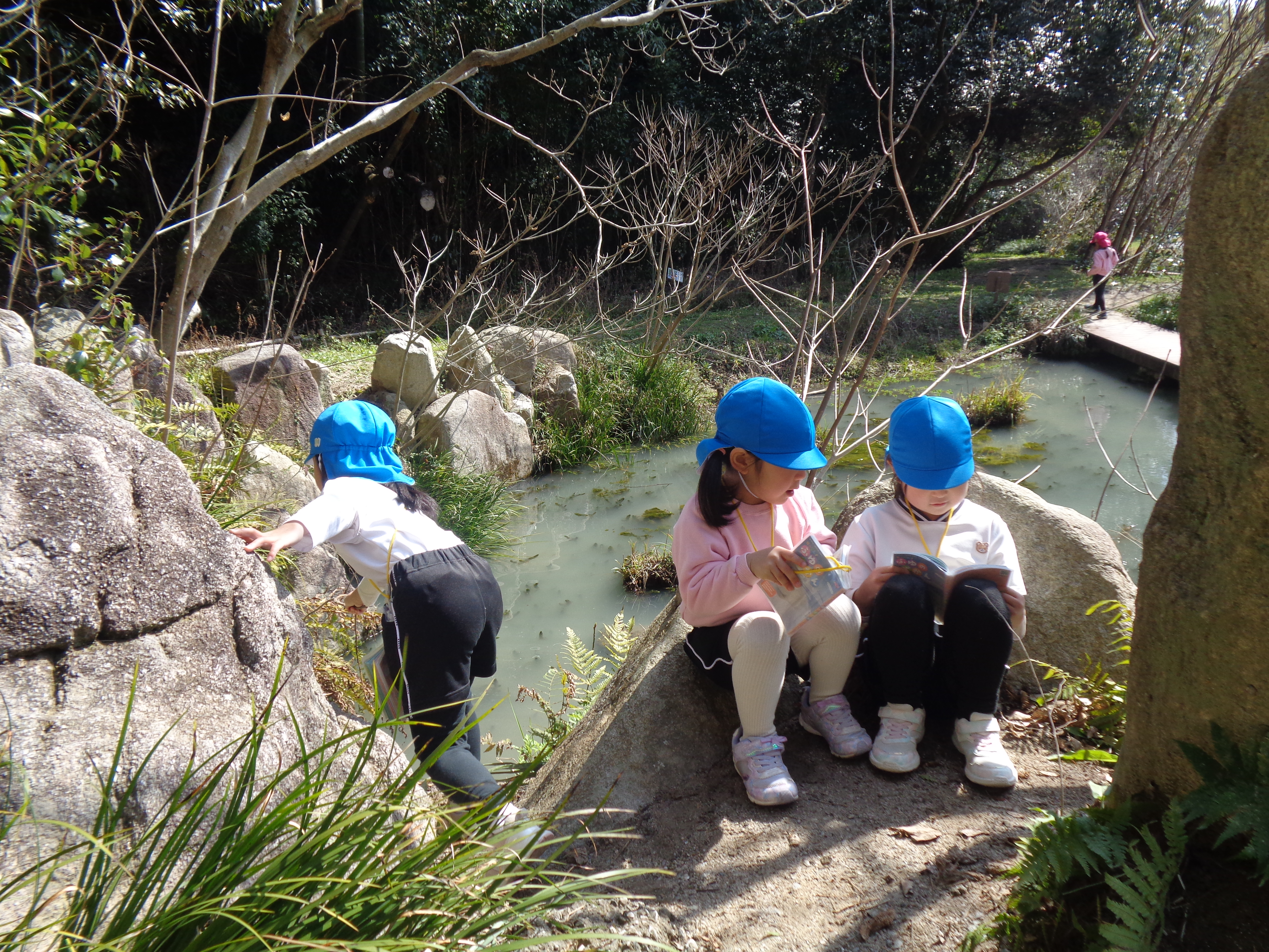 図鑑を見ながら「これと同じお花があったよ!」と嬉しそうに教えてくれたり、つくしやどんぐりをたくさん見つけている子どもたちもいました!