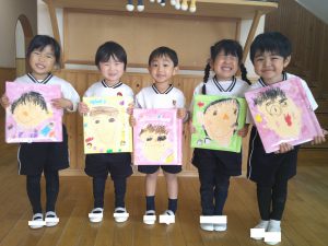 自分の顔と一年間で一番楽しかった思い出を描きました。