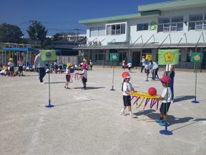 親子競技・今日は、年長さんのお兄さんとお姉さんと一緒にしました♪