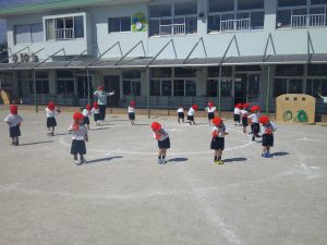 お遊戯・テンポが速い曲に合わせて踊り、隊形移動にも挑戦しています!