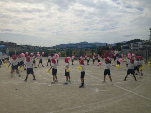 親子競技・「本番はお母さんと踊る!」「お父さんと踊ろうかな」と口々に話し、当日お家の方と一緒に踊ることを、今からとても楽しみにしていて踊っていました(^o^)/