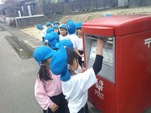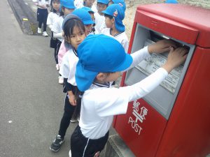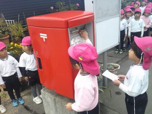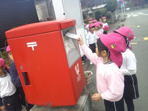 年長さんは、自分でお友だちに書いた年賀状を、出しに行きました☆