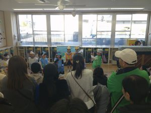 イルカショーのところで昼食を食べる予定なので、おにぎりやサンドイッチのご持参を、よろしくお願いします。