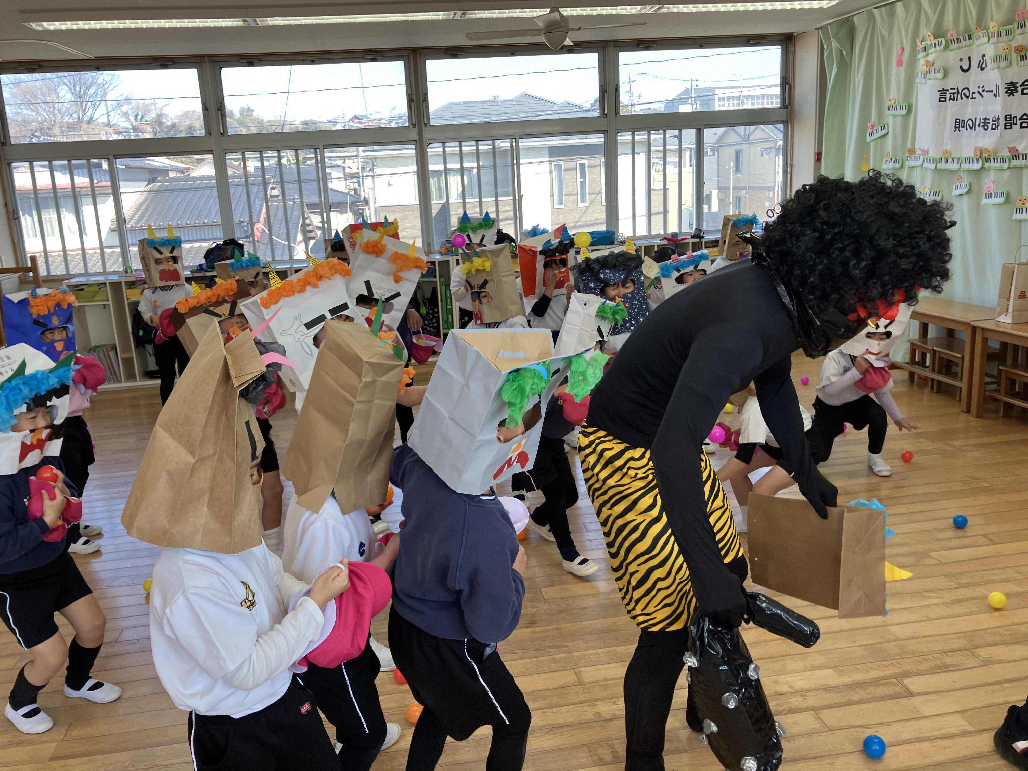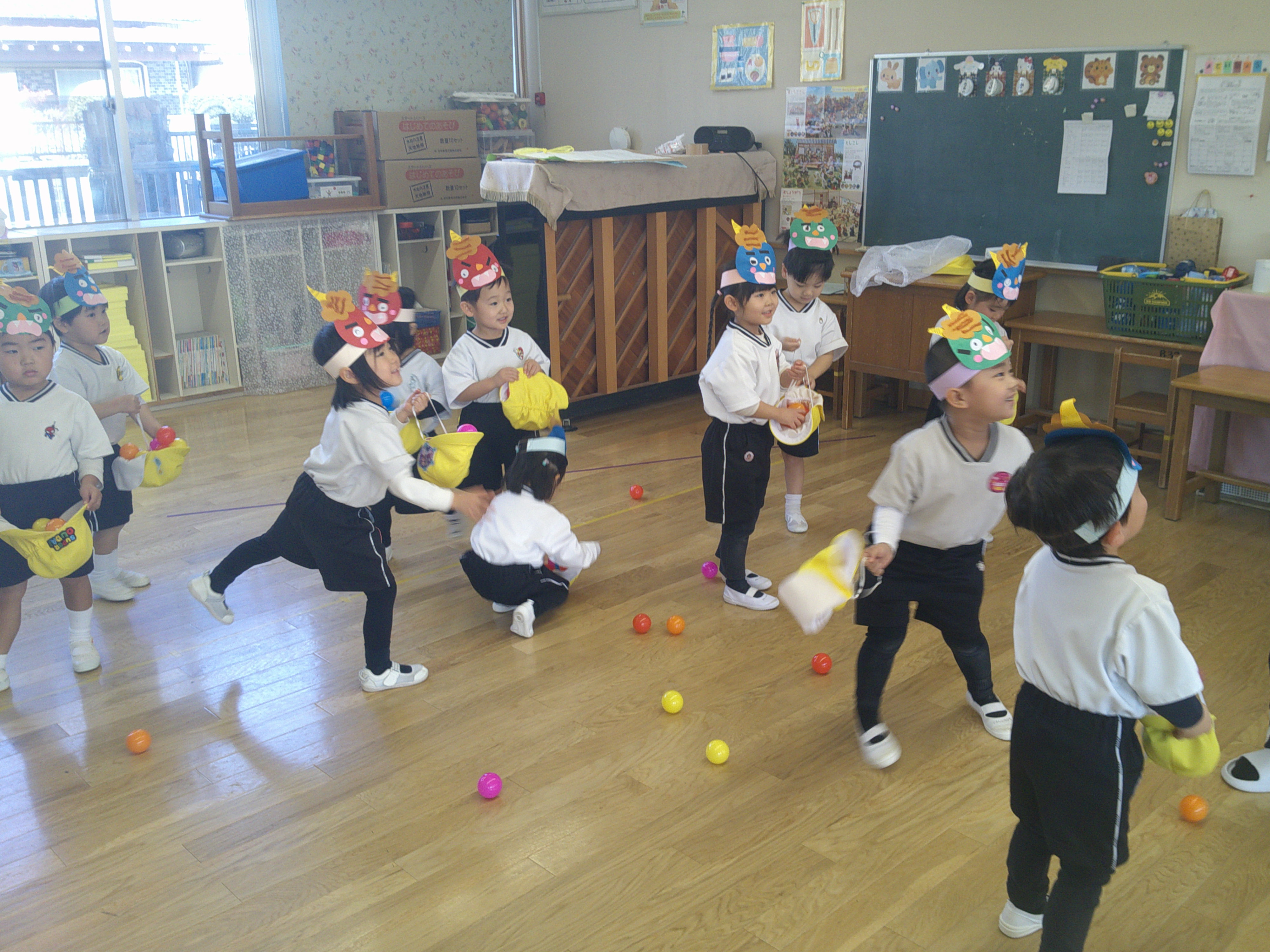 必死に逃げる子、泣きながらも鬼に豆の代わりのボールを投げる子、隠れる場所を見つける子など、様子は様々でした!