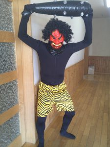 クラスで豆まきをしていると、突然赤鬼が登場!
