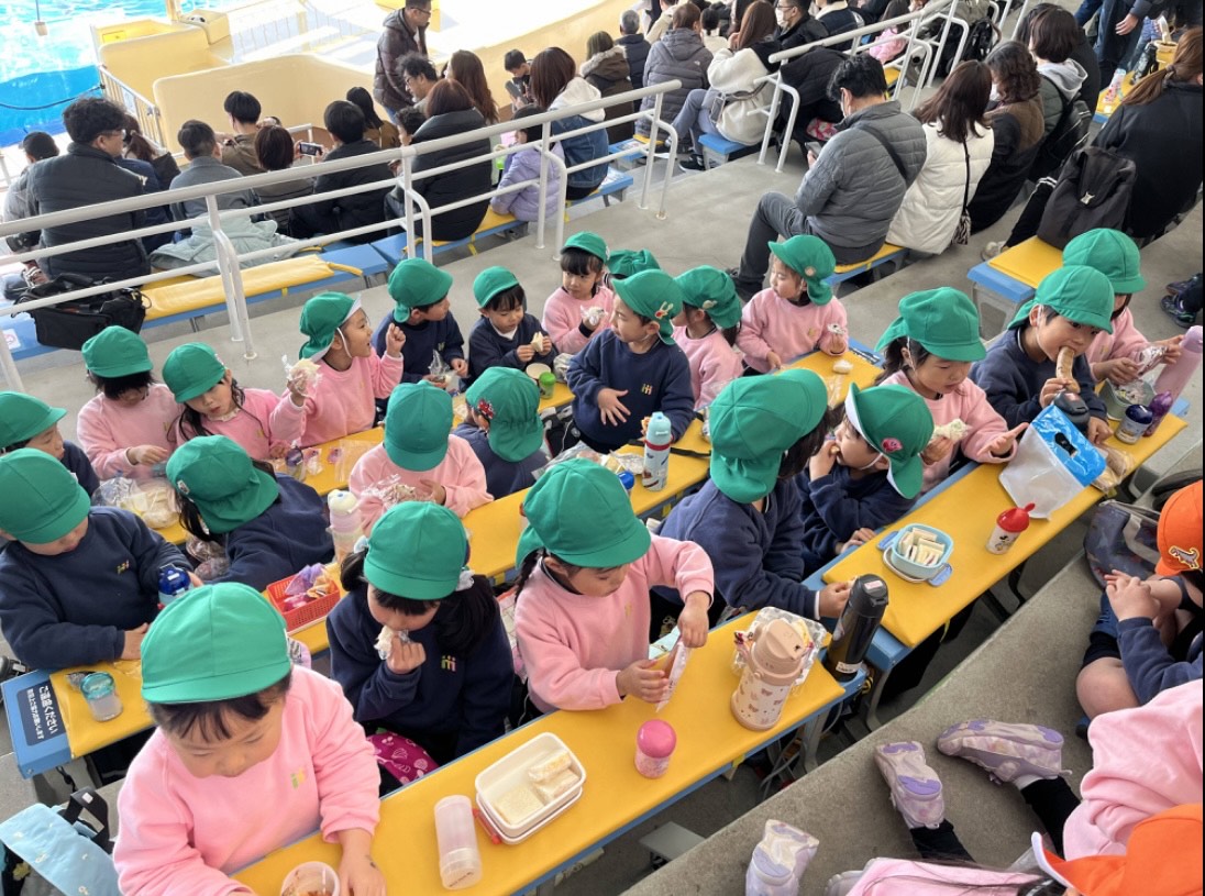 最初に、アシカ・イルカショーを見て、楽しみにしていたお弁当を食べました!