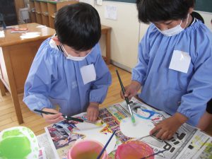 クレパスで模様を描いて、絵の具で塗りましたよ~😊💗