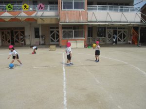 ドッヂボールもボールに当たらないように逃げたり、ボールを取ったり…頑張っていますよ~!