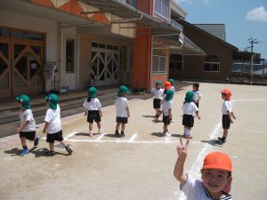 玉入れは♫アルプス一万尺の音楽に合わせ踊り、笛の合図で玉を入れます。