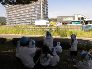 トラックに「ばいばーい!」と、手を振って👋