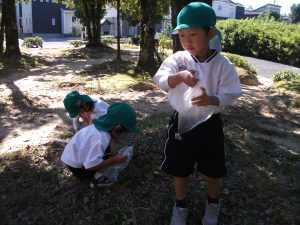 原田公園へ、秋を見つけにお友だちと手を繋いで出発です✊
