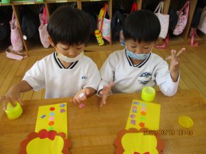 みんなでライオンのちとせあめ袋を作りをしました🦁