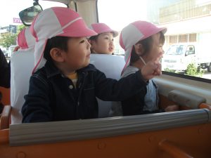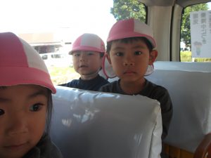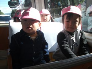 焼きいもや芋ほりの歌を歌いながらバスに乗って
