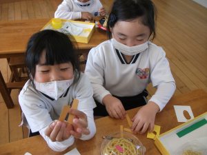 お店屋さんごっこに向けての品物づくりのはじまりです✌”