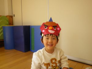 鬼のお面をかぶって準備万端!この時はまだニコニコ笑顔のうさぎ組さん😊