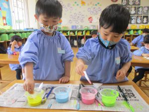 参観の日にお休みしていた子も一緒にできて