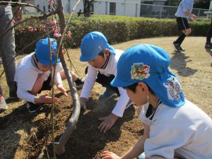 1人ずつ 土を優しくかけて、『おおきくな~れ!』と気持ちを込めて声をかけていました😊