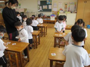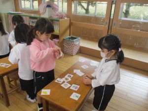 色んな絵や形が描いてあるカードを使って…