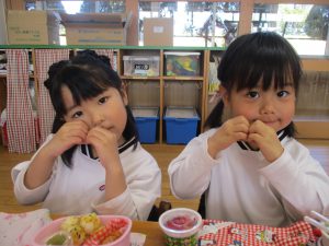 お部屋の中で好きな席に座ってお弁当を食べました!😋
