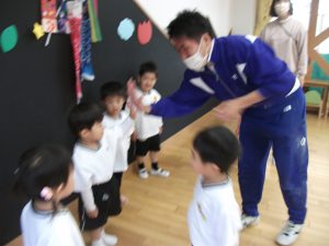 古賀先生と一緒にマットに触れたり、体を動かしたり、体操座りも教えてもらいました‼