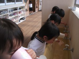蛇口を捻って水を出すのに苦戦している子も💦(笑)