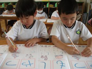 字を書く前は 「はい!」と言って 手を挙げて✋