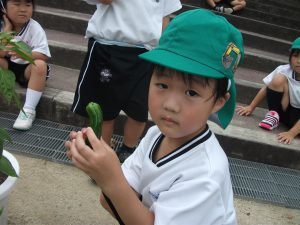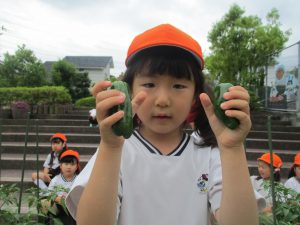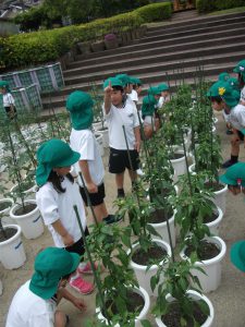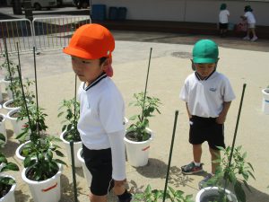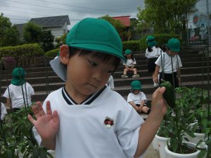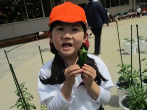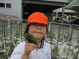 外で遊ぶと、ピーマンを見に行って、どれだけ大きくなったか見たり、収穫して持って帰ったり…✨