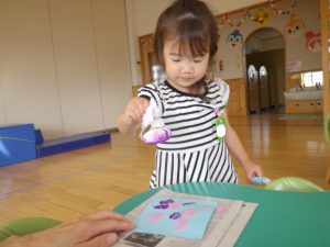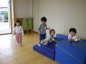 朝の準備が終わると、しばらくはお部屋で自由遊びです。お絵描き・パズル・マット遊び…