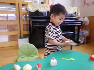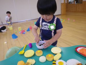雨の日はお部屋でブロックやおままごとセット・車のおもちゃなどで遊んでいます。