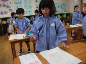 ”実が赤くなってたかな~”と色々考えながら塗っていた子どもたち✌✌