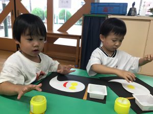 製作では、子どもたちが大好きな絵本、“ねないこだれだ”のオバケ👻を作りました‼