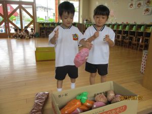 カレーの具材を取って、箱に入れて(本番は鍋です)