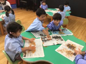 上手に色塗りをした後は、えのぐまみれになりながら遊んだ🐼そらぱんださん( *´艸`)