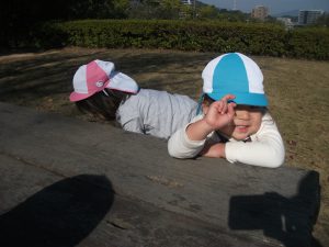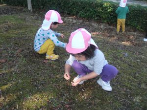 どんぐりもた~くさん落ちていて、大きいどんぐり、小さいどんぐり…夢中になって、拾い続けていました( *´艸`)