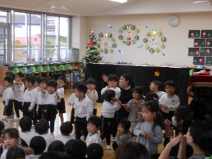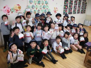 クリスマスのお菓子を園長先生からみんなへプレゼント🎁と、