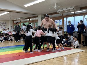 今日は、幼稚園にお相撲さんが