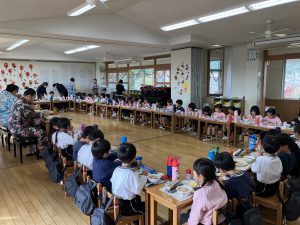 お昼は、年長さんと一緒に昼食をいただきました(*^-^*)